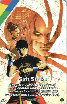 Always thinking on his feet, Shang-Chi uses his mastery of the martial arts to perform devastating combo attacks. Try to change the color to maximize Shang-Chi's Character Power or chain Wild Cards together to make powerful combinations! Remember, when changing the color to use your Character Power to look at the top 3 cards of the Character Deck - you don't have to always play another card.
