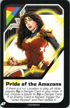 Always thirsting for battle, Wonder Woman thrives when she is fighting and defeating enemies. Play your "!" Cards purposefully to get enemies into the game so you can then defeat them! Don't be afraid to keep Enemy Cards around longer to activate your character power when you need to take control of the game.